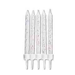 Svíčky se stojánkem bílé se třpytkami (10 ks)